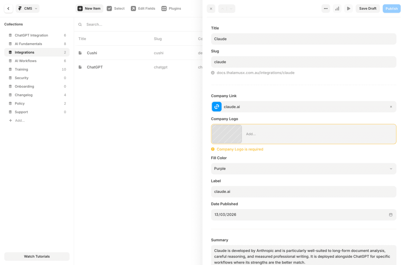 Alongside this, we implement a centralised prompt and data management system to ensure consistency, oversight, and long-term scalability. Approved prompt libraries, acknowledgement tracking, and usage standards prevent fragmented or uncontrolled AI adoption.
